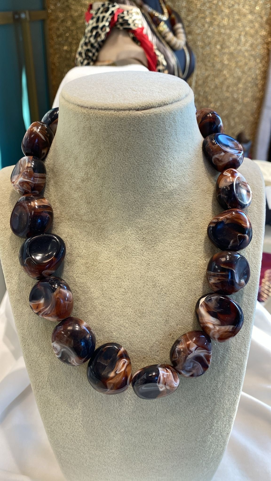 İthal Acı Kahve Krem Dalgalı Boncuk Kolye