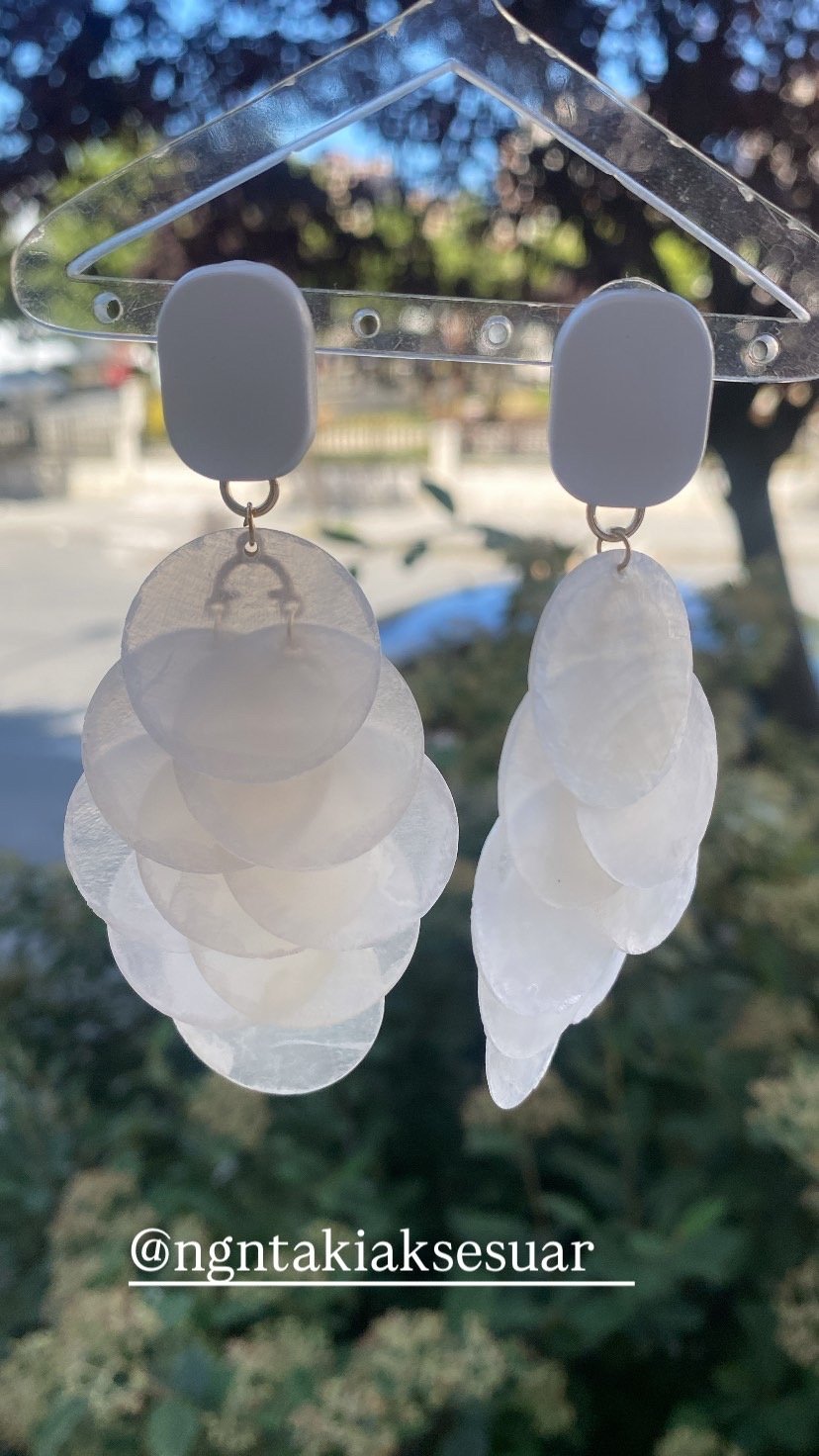 İthal Beyaz Pullu Sallantılı Küpe