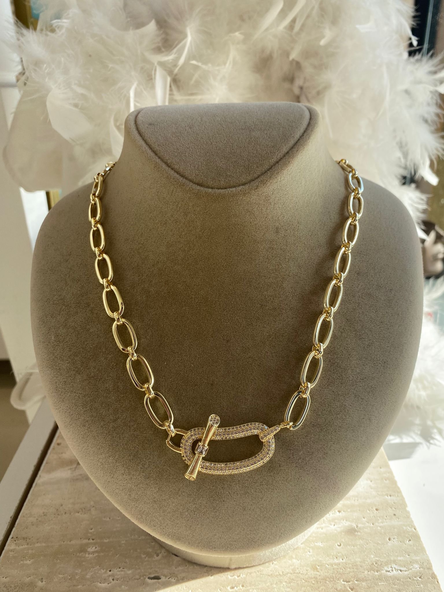İthal Gold VİP Taşlı Geometrik Şekilli Kolye